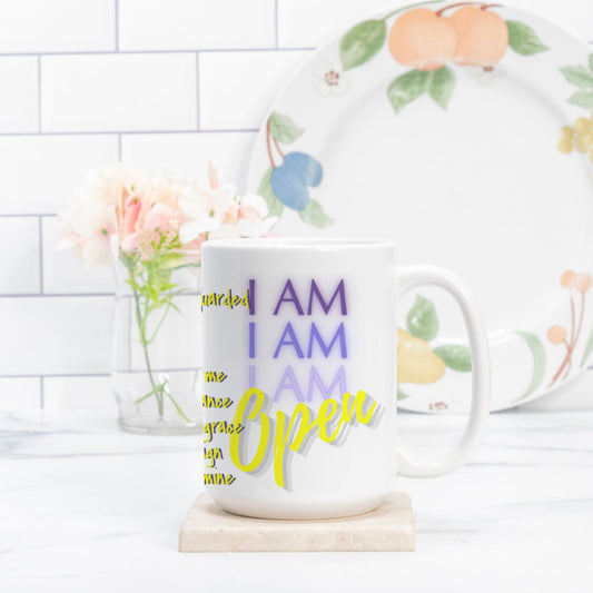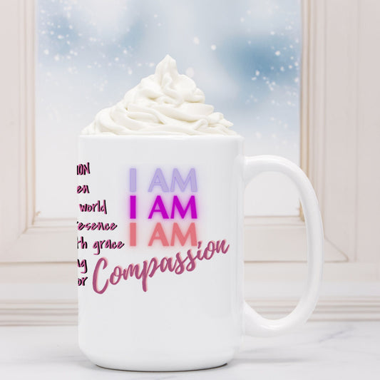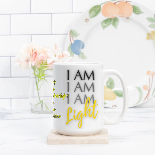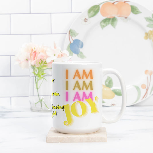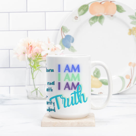 Crafted from 100% white ceramic, anchoring the power of the I AM frequency into your everyday moments. Whether filled with herbal tea, grounding cacao, or morning coffee, this spacious mug invites you to pause, breathe, and return to your truth.